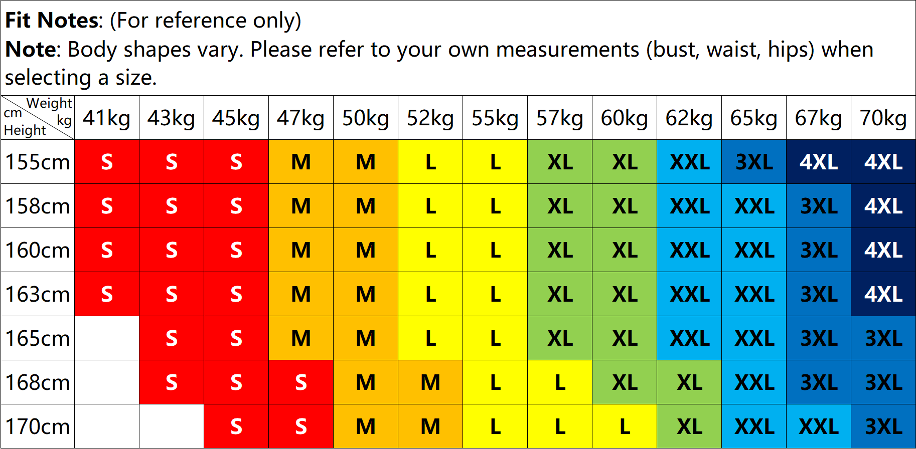 Please refer to the size chart and choose based on your body measurements.