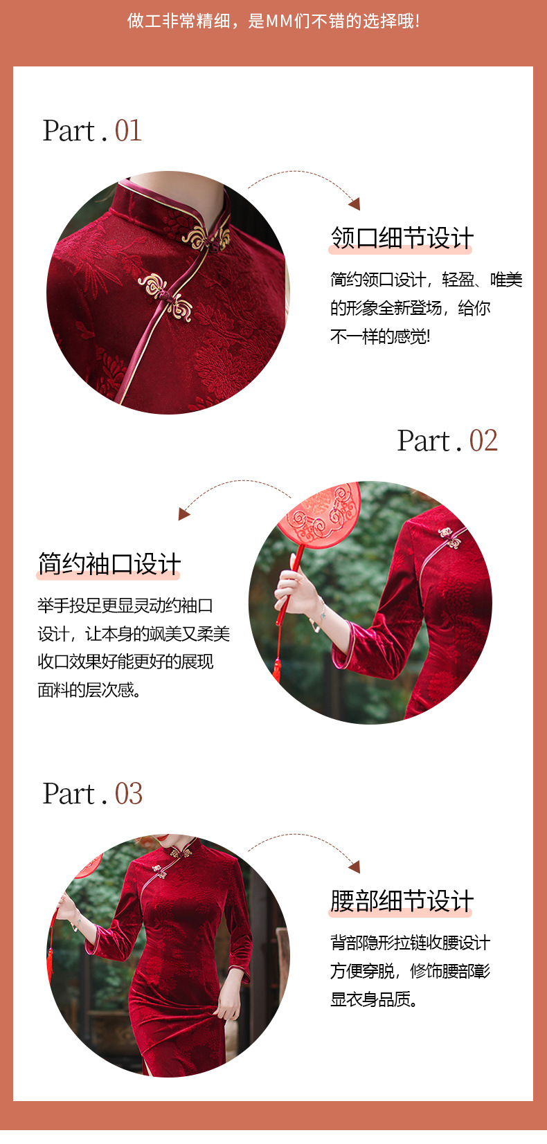 Friendly Reminder: As each cheongsam is individually hand-cut, there may be a slight variation of approximately 1–1.5 cm in measurements due to manual handling. All measurements are in centimeters. Please also note that minor color differences may occur due to lighting conditions during photography.