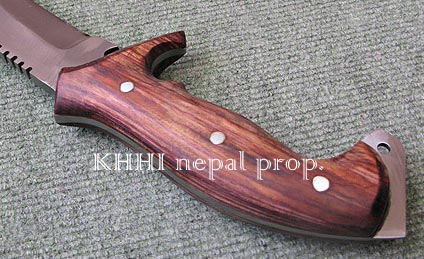 KHHI Nepal is the creator (first designer, maker, and seller) of the "Scourge (Apocalypse)" kukri-bowie that went into production from March 2013. This bowie knife is now copied and sold by many kukri, knife vendors as it stormed the knife market in no time. PLEASE BE AWARE OF IMITATION and some crooks who are trying to mislead buyers/visitors by providing fake information on the internet about our Scourge knife. This Scourge kukri is an excellent fusion of a traditional khukuri and bowie knife (east + west). Scourge is an apocalyptic Survival khukuri, Zombie hunter, lethal weapon, and a hardcore utility knife.
